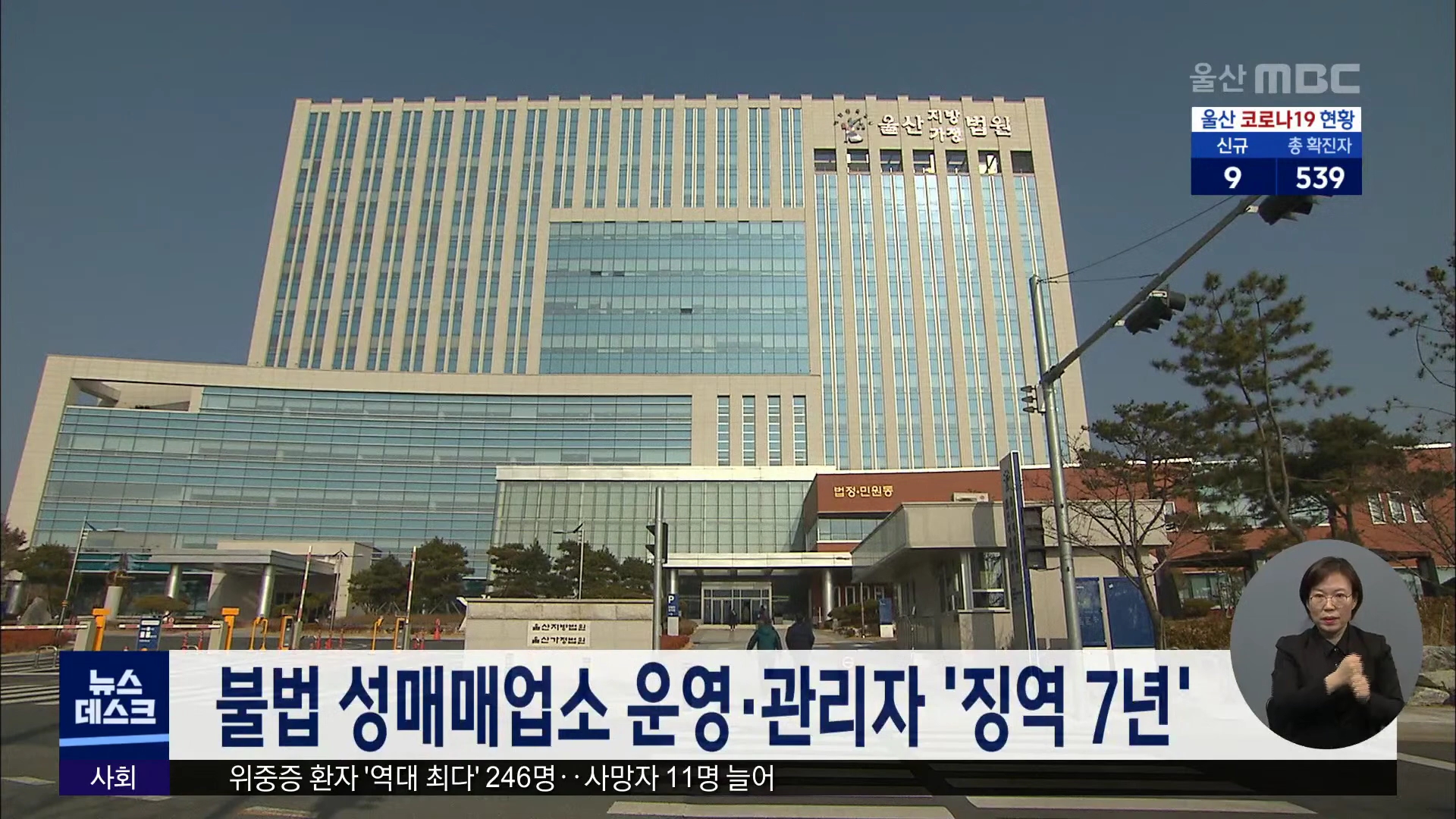 울산지법 형사11부는 불법 성매매업소를 운영한 혐의로 기소된 업주 54살 A씨와 실장 31살 B씨에게 각각 징역 7년을 선고했습니다. 이들은 지난해 9월부터 9개월여 동안 남구에서 불법 성매매업소를 운영하며 10대 청소년까지 유인해 성매매를 하도록 한 혐의로 재판에 넘겨졌습니다.//