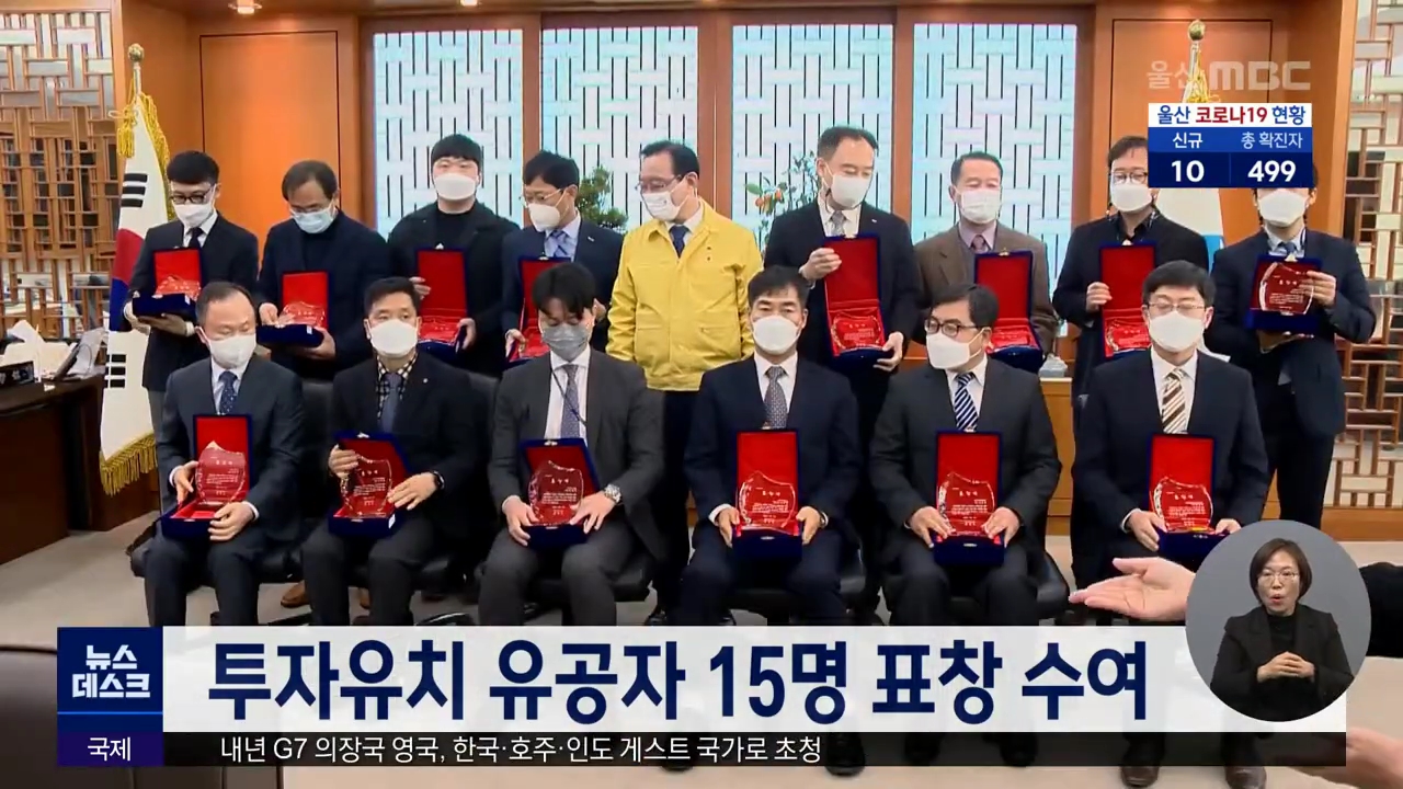 지역 투자기업을 격려하기 위한 2020 성공투자기업 컨퍼런스가 오늘(12/16) 시청에서 열렸습니다. 올해는 코로나19로 행사를 진행하지 않고 국내기업 투자유치 유공자로 권의헌 롯데정밀화학 상무와 외투기업 유공자에는 차주현 에스케이 피아이씨글로버 부사장 등 15명에게 표창을 수여했습니다.