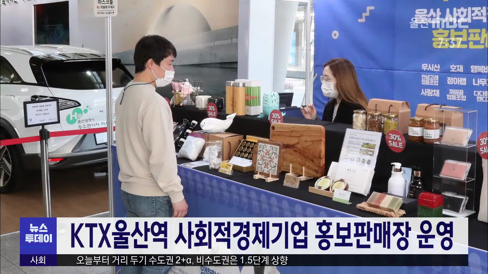 사회적경제기업 홍보 판매장 오늘부터(11/30) 12월 31일까지 KTX 울산역에서 운영됩니다. 공예품과 목공품, 친환경 생활용품, 식품 가공 등을 다루는 12개 기업이 20여 개 제품을 선보이며, 최대 30% 할인 행사도 진행합니다. 울산에서는 현재 557개 사회적경제기업이 활동하고 있습니다. //