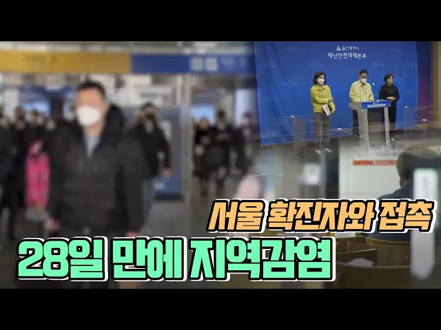 ◀ANC▶울산에서 28일 만에 국내 요인으로 인한 코로나19 확진환자가 발생했습니다. 서울 본사에서 울산으로 출장을 온 회사원이 감염 원인으로 추정되는데, 방역당국은 이 회사원과 접촉한 사람들의 신원을 파악하는 어려움을 겪고 있습니다. 유영잭 ◀END▶ ◀VCR▶지난 13일 서울 강남구 412번 확진환자가 울산을 방...
