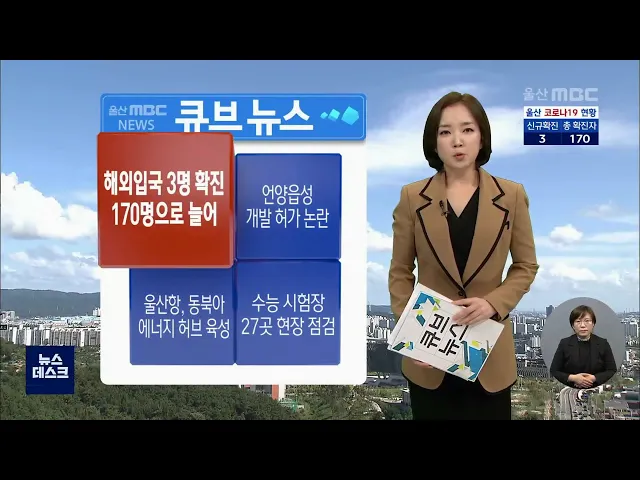 미국에서 입국한 울산의 70대 남성과아내, 그리고 독일에서 입국한40대 남성이 코로나19 확진 판정을 받았습니다. 이들 부부는 미국에서 올해 7월부터 체류하다 입국해 어제(11/16) 울주군보건소 선별진료에서 진단 검사를 해 오늘(11/17) 양성 판정을 받았습니다. 이로써 울산의 코로나19 확진환자는 170명으로 늘었습니다...