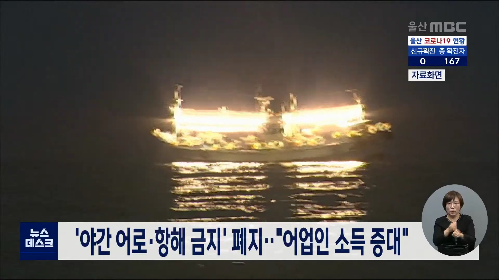그동안 울산 연안에서 금지됐던 야간 조업이나 항해가 오늘(11/16)부터 가능해지게 됐습니다. 울산시는 지난 2011년 선박안전조업규칙에 따라 울산 연안 1해리 안에서 오후 10시부터 다음날 새벽 3시까지 어로와 항해가 금지됐지만, 오늘(11/16)자로 고시를 폐지한다고 밝혔습니다. 이에따라 어선이나 양식장 관리선의 조업...