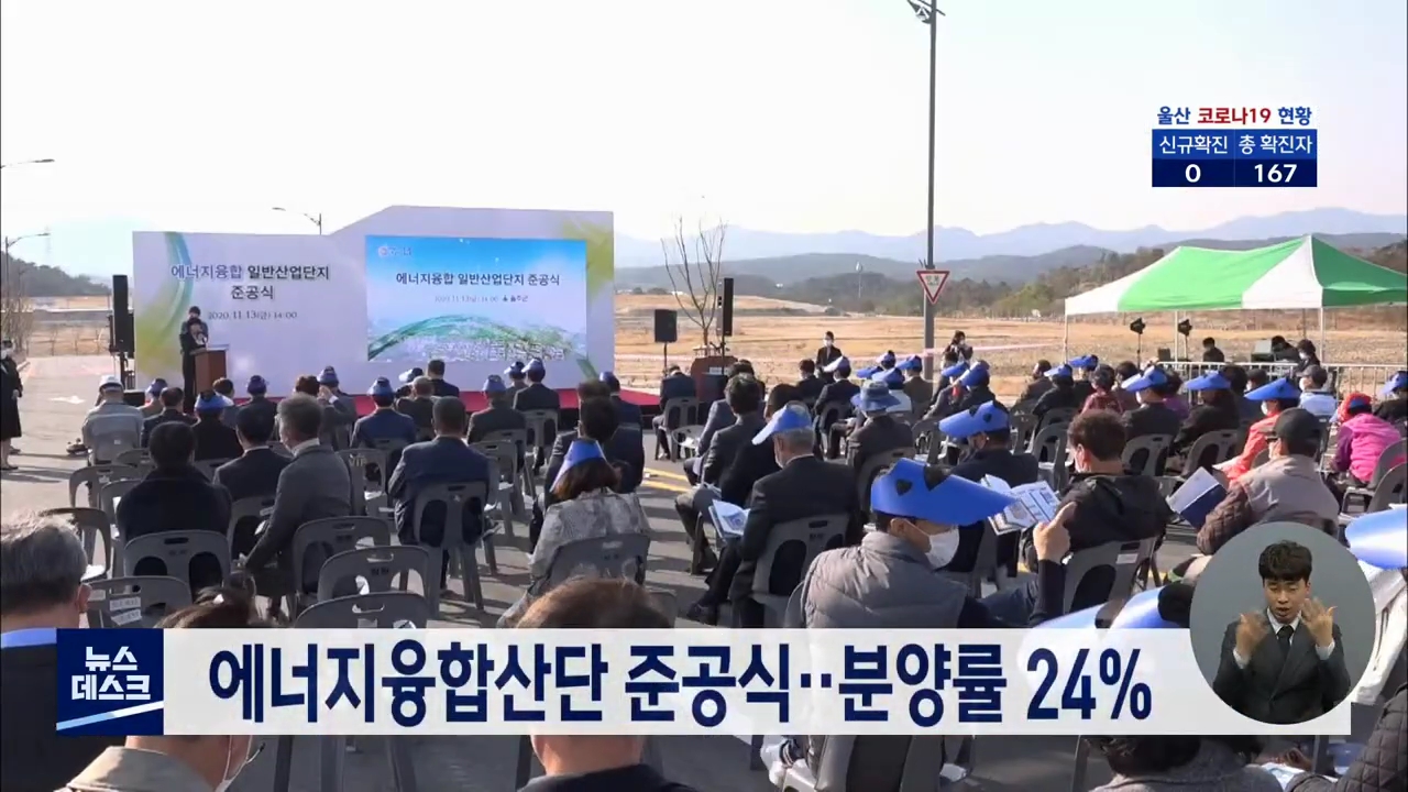 에너지융합 일반산업단지 준공식이 오늘(11/13) 울주군 서생면에서 열렸습니다. 울주군은 지난 2015년부터 사업비 2천790억 원을 들여 서생면 신암리 일대에 102만 제곱미터 규모의 산업단지를 조성했습니다. 현재 16개 기업이 25필지 계약을 마쳐 분양률 24%를 기록하고 있습니다. //