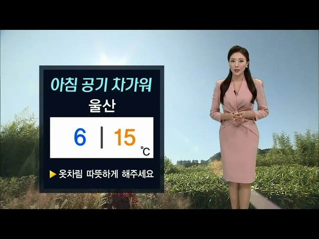 [기온 차차 올라... 울산 건조주의보]1) 추위의 절정을 넘겼다고는 하지만 오늘 아침 공기 여전히 차갑습니다. 현재 기온은 6.9도로 한자릿 수를 맴돌고 있는데요. 어제 같은 시각 보다 2도가량 높지만 그래도 춥기 때문에 나오실 때 옷차림 따뜻하게 입고 나오시기 바랍니다.2) 한편 건조주의보가 내려진 울산과 부산, 경...