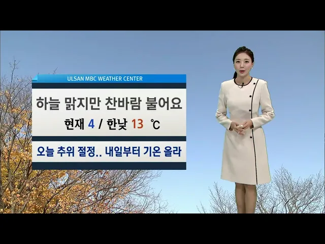 [하늘 맑지만 찬바람 불어.. 대기 건조] 1) 한주의 시작인 월요일인 오늘 하늘은 맑지만 찬바람이 강하게 불겠습니다. 현재 기온은 4도로 나오실 때 옷차림 따뜻하게 하셔야겠는데요. 한낮에도 기온이 크게 오르지 못해 13도에 머무르겠습니다. 이 추위는 오늘 절정을 이룬 후 기온이 차차 오르겠지만, 구름 없이 맑은 날씨...