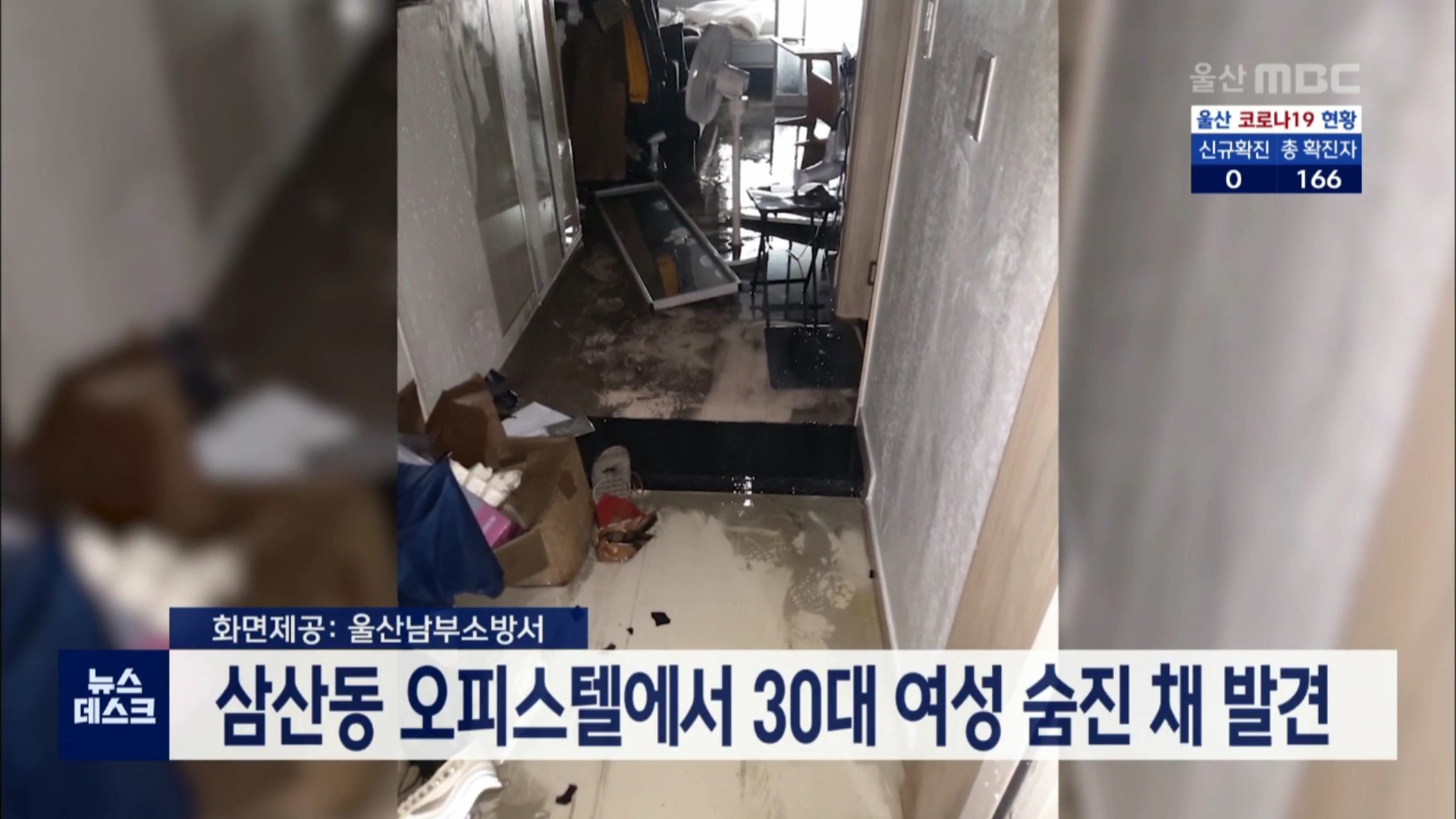 오늘(11/8) 오전 9시 10분쯤 남구 삼산동의 한 오피스텔에서 30대 여성이 숨진 채 발견됐습니다. 오피스텔에서 물이 샌다는 신고를 받고 출동한 소방관은 잠겨 있던 문을 열고 들어간 오피스텔에 화재흔적이 있었고 그곳에서 숨진 여성을 발견했다고 밝혔습니다. 경찰은 과학수사대 감식 등을 통해 정확한 경위를 조사하고 ...