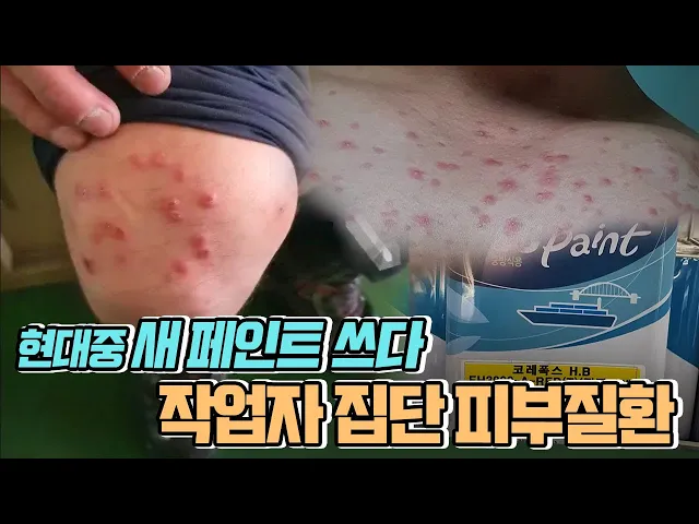 ◀ANC▶현대중공업이 최근 신제품 페인트를 개발해 선박 도장작업에 쓰고 있는데, 이 페인트를 사용한 뒤부터 작업자들이 집단으로 피부 질환을 앓기 시작했다는 주장이 제기됐습니다.노동부가 이 페인트에 노출된 작업자 330여 명에 대해 건강진단을 명령했는데문제가 된 페인트는 여전히 현장에서사용되고 있습니다.유...