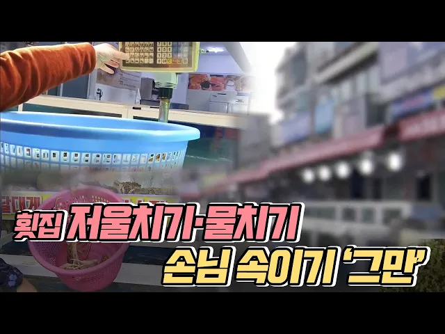 ◀ANC▶일부 횟집에서 손님을 상대로 저울의 무게를 속이는 소위 '저울치기' 라는 수법을 사용하는경우가 간혹 있는데요.북구 정자항의 일부 횟집에서 이런 행위가 문제가 되자 상인들이 직접 나서 자정 캠페인을 벌이고 있습니다.정인곤 기자 ◀END▶ ◀VCR▶북구 정자항의 한 가게.바구니에 담은 킹크랩 무게를 이상...