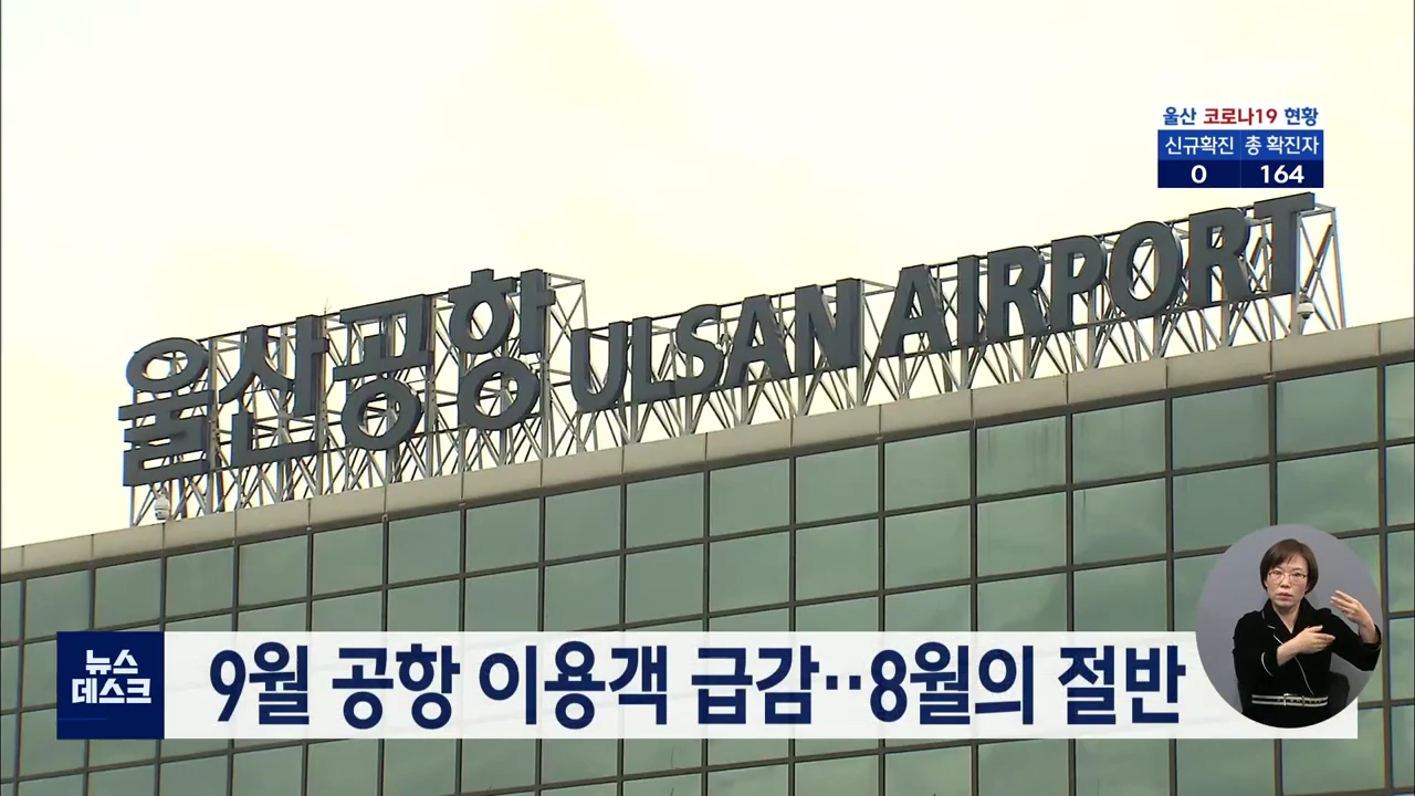 울산공항 9월 이용객 수가 지난 8월에 비해 절반 수준으로 크게 떨어졌습니다. 지난 3월부터 회복세를 보이며 8월에는 7만여명까지 이용객이 늘어 지난해와 비슷한 수준이었지만 코로나19 재유행의 여파로 9월 이용객은 3만 7천명까지 급감했습니다. 올해 울산공항의 1월부터 9월까지 이용객수는 모두 35만 1천여명으로 지...