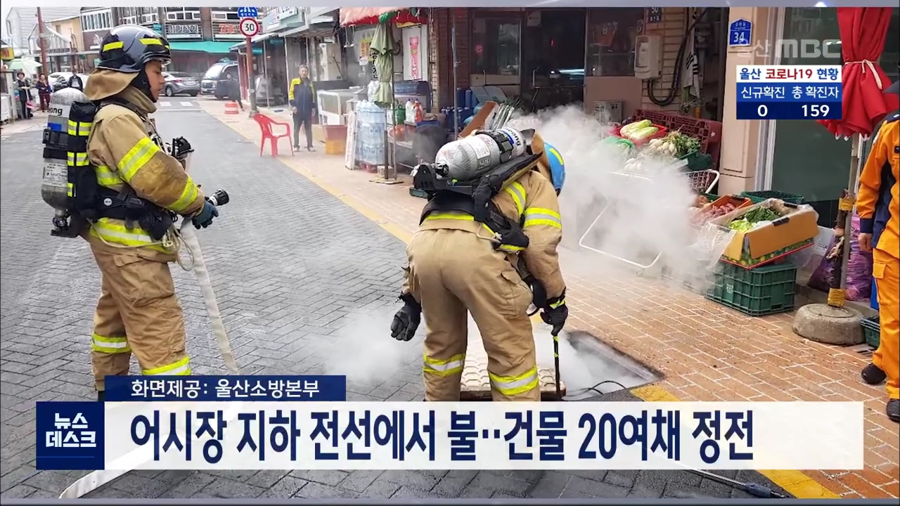 오늘(10/28) 오전 9시 43분쯤 동구 방어동 어시장 인근 도로 지하 전선 케이블에서 불이 났습니다. 이 사고로 주변 건물 20여채가 약 1시간정도 정전돼 불편을 겪었습니다. 소방당국은 지하 전선 케이블에서 합선이 일어난 것으로 보고 정확한 화재원인을 조사하고 있습니다.
