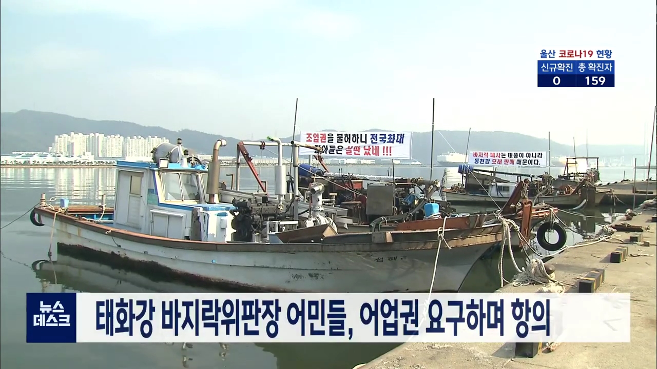 태화강 바지락위판장 어민들이 내수면 어업권을 요구하며 어선에 현수막을 설치하고 남구청에 항의하고 있습니다. 이들은 동천강 준설공사 등으로 몇년째 태화강 하구에 바지락 씨가 말랐다며, 어업활동을 하기 위해 내수면 어업허가를 신청했지만 받아들여지지 않았다고 주장했습니다. 이에 대해 남구청은 울산시와 수산조...