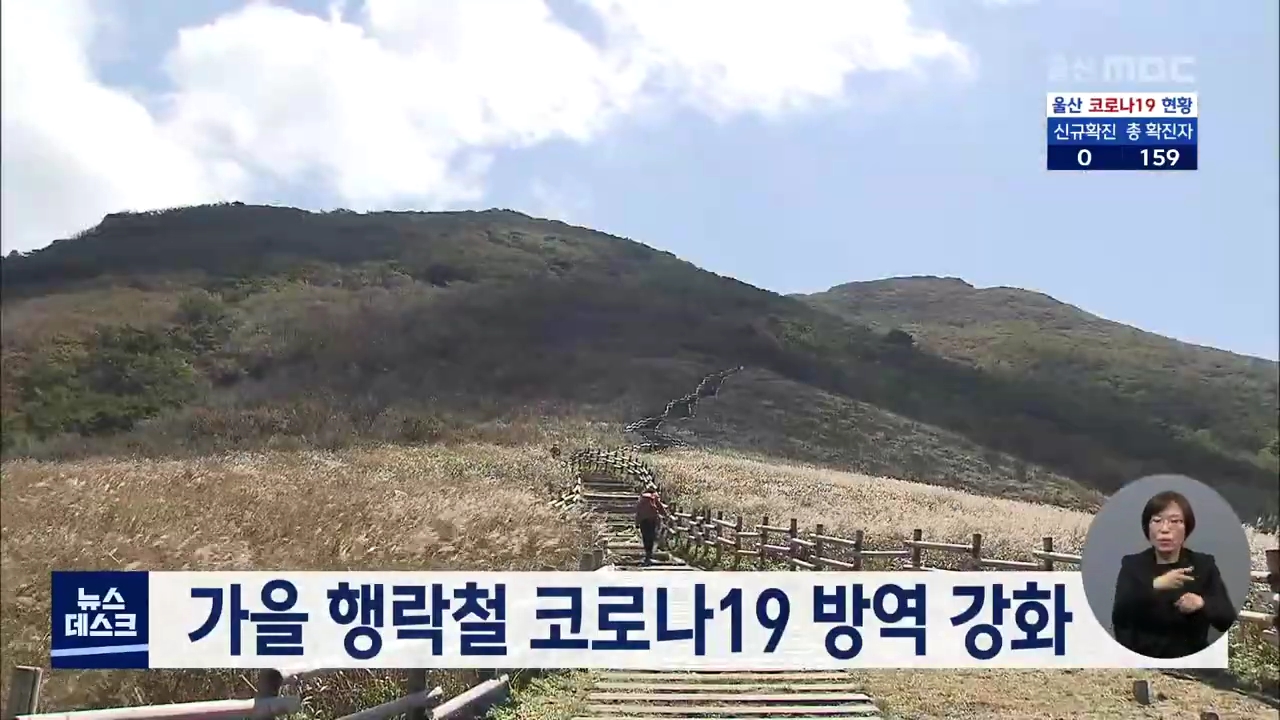 울산시가 가을 행락철을 맞아 코로나19 방역과 점검을 강화합니다. 시는 전세버스 운송사업자의 탑승객 명단 관리와 손소독제 비치 여부 등을집중 검검할 계획입니다. 또, 주요 산행지인 신불산 등 자연공원과 관광지, 야영장 등에서 휴게소 물품구입 20명 인원제한과 최소 1미터 대기줄 거리두기 등이 잘 지켜지는지 살펴...