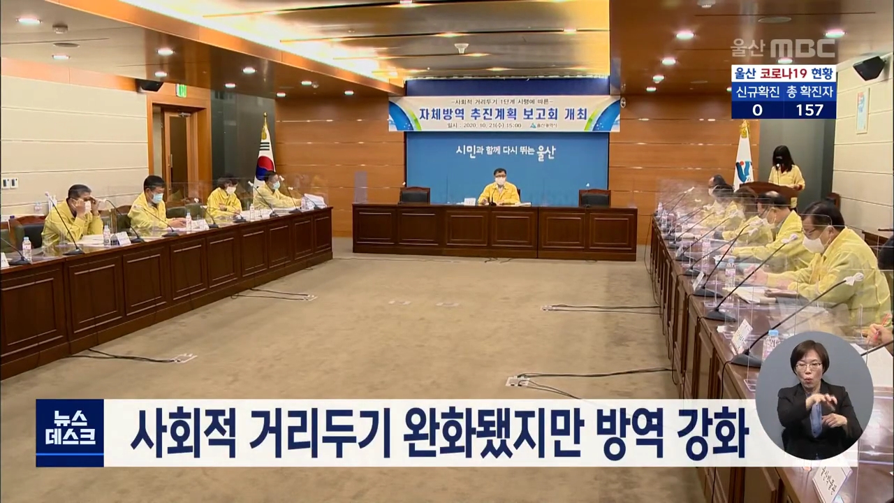 울산시는 사회적 거리두기가 1단계로 완화됐지만, 부산과 수도권 병원 등지에서의 집단 감염이 잇따르고 있어 방역을 강화하기로 했습니다. 시는 오늘(10/21) 관련 부서 회의를 열어 각급 학교와 도심 공원, 예식장, 종교 시설, 대중교통 등에 대한 방역 계획을 마련해 점검했습니다. 또 사회적 거리두기 완화에 따른 유흥 ...
