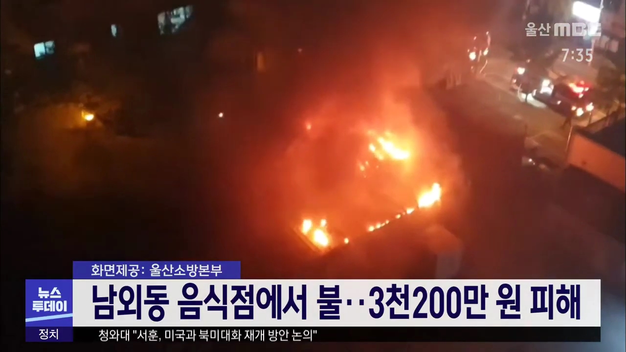 어제(10/18) 저녁 10시 17분쯤 중구 남외동의 한 아파트 인근 음식점에서 불이 나 소방서 추산 3천200만 원의 재산피해를 내고 30분 만에 꺼졌습니다. 소방당국은 화재 당시 식당에는 손님이 없었다며 식당 내부 확인 등을 통해 정확한 화재 원인을 조사하고 있습니다.