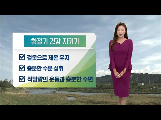 [아침 기온 쌀쌀... 낮과 밤의 기온차 커요]1) 오늘 아침 더 쌀쌀합니다. 북서쪽에서 찬 공기가 남하하면서 어제 이 시각보다 기온이 3도가량 더 낮은데요. 낮 동안에는 햇볕이 기온을 끌어올리면서 21도까지 오르겠습니다. 내일은 아침 기온이 10도까지 떨어질 전망인데요. 옷차림 잘 챙기시고 건강관리 잘해주시기 바랍니...