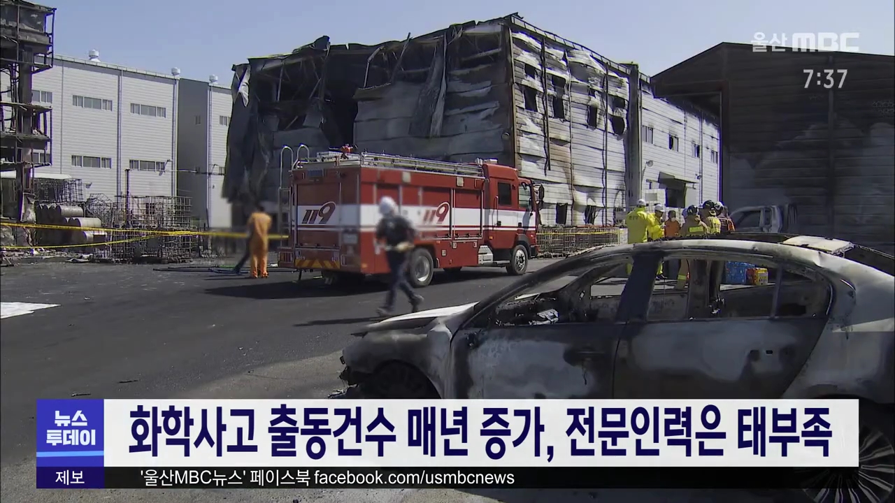 울산지역에 화학사고 출동건수도 매년 증가하고 있지만 화학사고를 처리할 소방당국의 전문인력은 부족한 것으로 나타났습니다. 국정감사 자료에 따르면 최근 5년동안 화학사고 출동건수는 2015년 4건이었지만 2016년에는 8건, 2018년에는 16건, 지난해에는 33건으로 빠르게 늘고 있습니다. 하지만 소방당국의 최근 10년간...