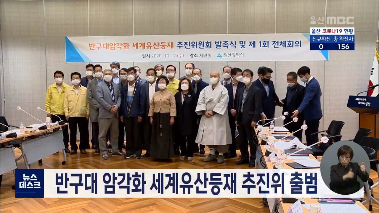 반구대 암각화 세계유산등재 추진위원회가 오늘(10/14) 출범했습니다. 추진위는 행정과 학술연구, 보존관리, 대외협력등 4개 분과에 걸쳐 38명이 위촉됐습니다. 특히 한국수자원공사와 토목기술 전문업체 관계자 등이 위촉돼 식수 확보와 사연댐 여수로 수문설치에 관한 실무까지 논의할 예정입니다.