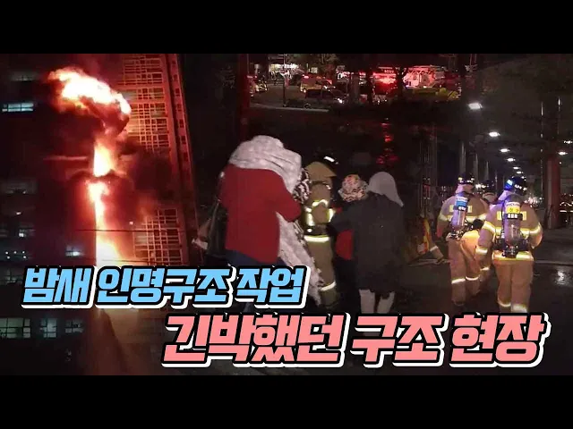 ◀ANC▶불이 난 현장에서는 밤새도록인명 구조 작업이 이어졌습니다.아이 구조 소식에 한걸음에 달려가는부모들의 모습도 있었는데요.주민 수십 명이 병원으로 이송됐지만다행히 큰 인명 피해는 없었습니다.김문희 기자. ◀END▶ ◀VCR▶주민 40여 명이건물 옥상에서 구조를 기다립니다.바로 아래층에서 소방대원들이 ...