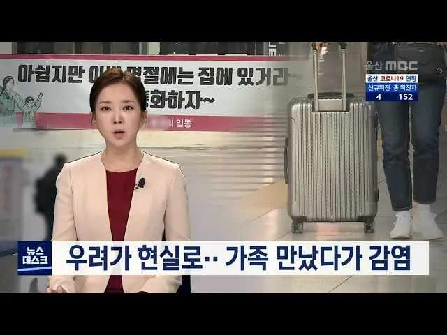 ◀ANC▶추석 연휴 동안 울산에서는 코로나19 환자가 5명 추가로 발생했습니다.타지에서 온 가족이나 친척을 만났다가코로나19에 감염되거나, 추석 연휴를 맞아 울산을 찾은 귀성객이확진 판정을 받기도 했습니다.유희정 기자. ◀END▶ ◀VCR▶울산 148번 환자는 울주군에 사는47살 여성입니다.(CG)환자의 남편이 부산의...