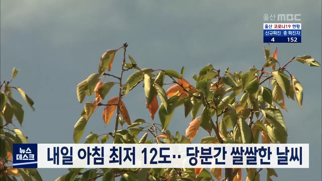 울산지방은 오늘(10/4) 낮 최고기온이 26.1도까지 올라 한낮에는 다소 더웠습니다. 오늘 밤부터 기온이 크게 내려가 내일(10/5)은 아침 최저기온이 평년보다 6도 이상 낮은 12도까지 떨어지겠습니다. 내일 오전에는 최대 시속 45km에 이르는 강한 바람도 불 것으로 예상됩니다. 모레(10/6)도 아침 최저기온이 11도에 머무는...