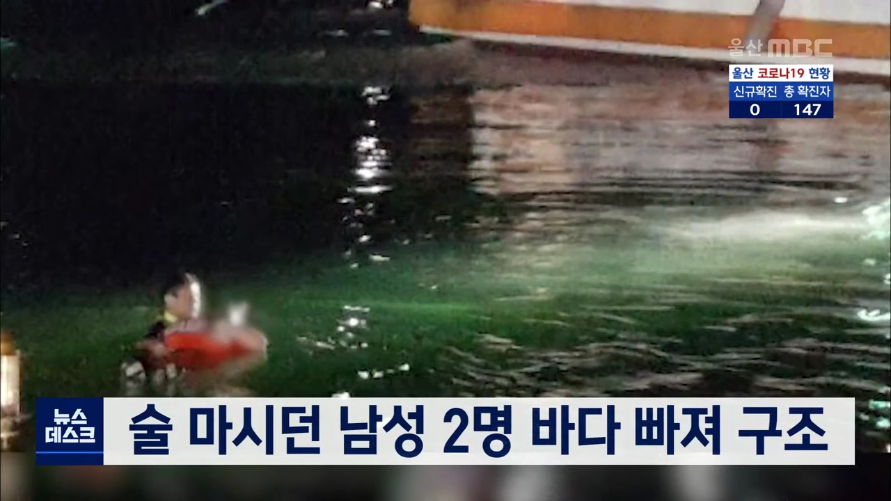 어젯밤(9/29) 동구 방어진항 앞바다에 빠져 허우적거리던 남성 2명이 해경에 의해 구조됐습니다. 60살과 50살인 이들은 어젯밤 11시쯤 방어진항 해상추락방지턱에서 술을 마시다가 중심을 잃고 바다에 빠진 것으로 조사됐습니다. 해경을 항포구 인근에서 음주를 절대 해서는 안된다고 당부했습니다.//