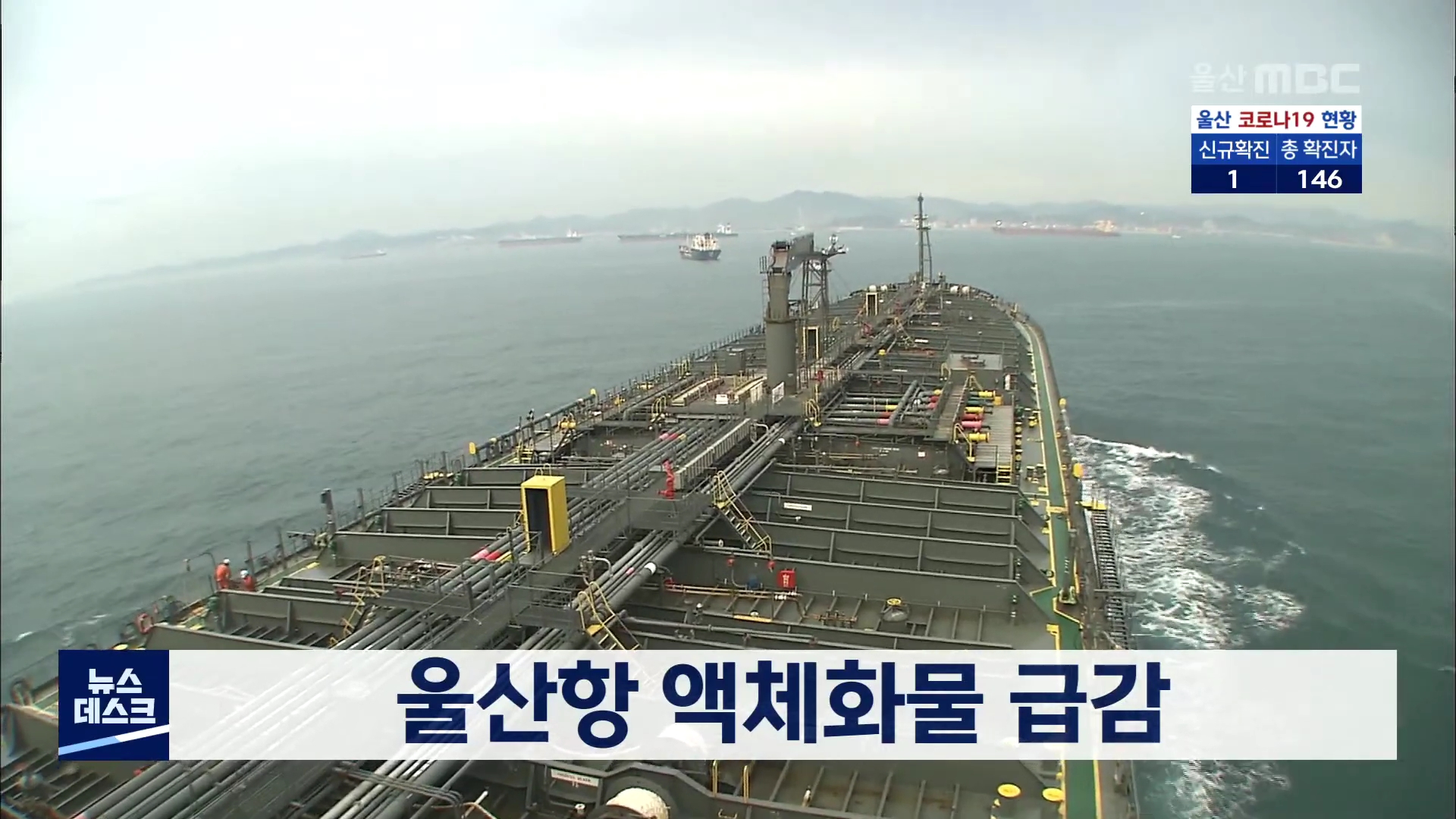 코로나 장기화와 글로벌 석유수요 감소로 울산항 전체 물동량의 80%를 차지하는 액체화물이 큰 폭으로 감소했습니다. 울산항만공사에 따르면 지난달 울산항의 액체화물은 1,235만톤으로 지난해 같은 기간보다 16.2%나 줄었습니다. 울산항의 지난달 물동량도 지난해보다 14% 감소한 1,487만톤에 그쳤습니다.