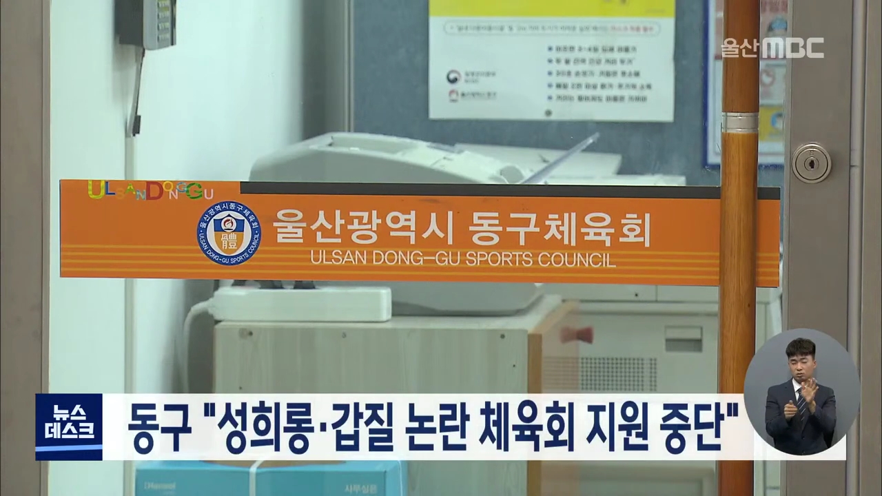 동구청이 성희롱과 갑질 논란이 불거진 동구체육회와 관련한 지원 사업을 중단합니다. 동구는 입장문을 내고 비민주적 체육회 운영을 바로잡고자 했으나 시정되지 않았고, 동구체육회장의 직장 갑질과 성희롱 논란까지 불거졌다며 이같이 밝혔습니다. 동구청은 이와 함께 동구체육회와 맺었던 각종 위탁업무 해지를 검토하...