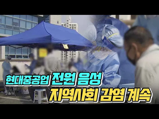 ◀ANC▶코로나19 집단 감염이 발생한 현대중공업 외업1관 직원들을 모두 검사한 결과 다행히전원 음성이 나왔습니다.하지만 어떻게 감염이 일어난 건지 아직 알지 못하는 데다, 환자들로 인한지역사회 연쇄 감염도 이어지고 있어서방역 당국은 경계를 늦추지 않고 있습니다.유희정 기자. ◀END▶ ◀VCR▶현대중공업 외...