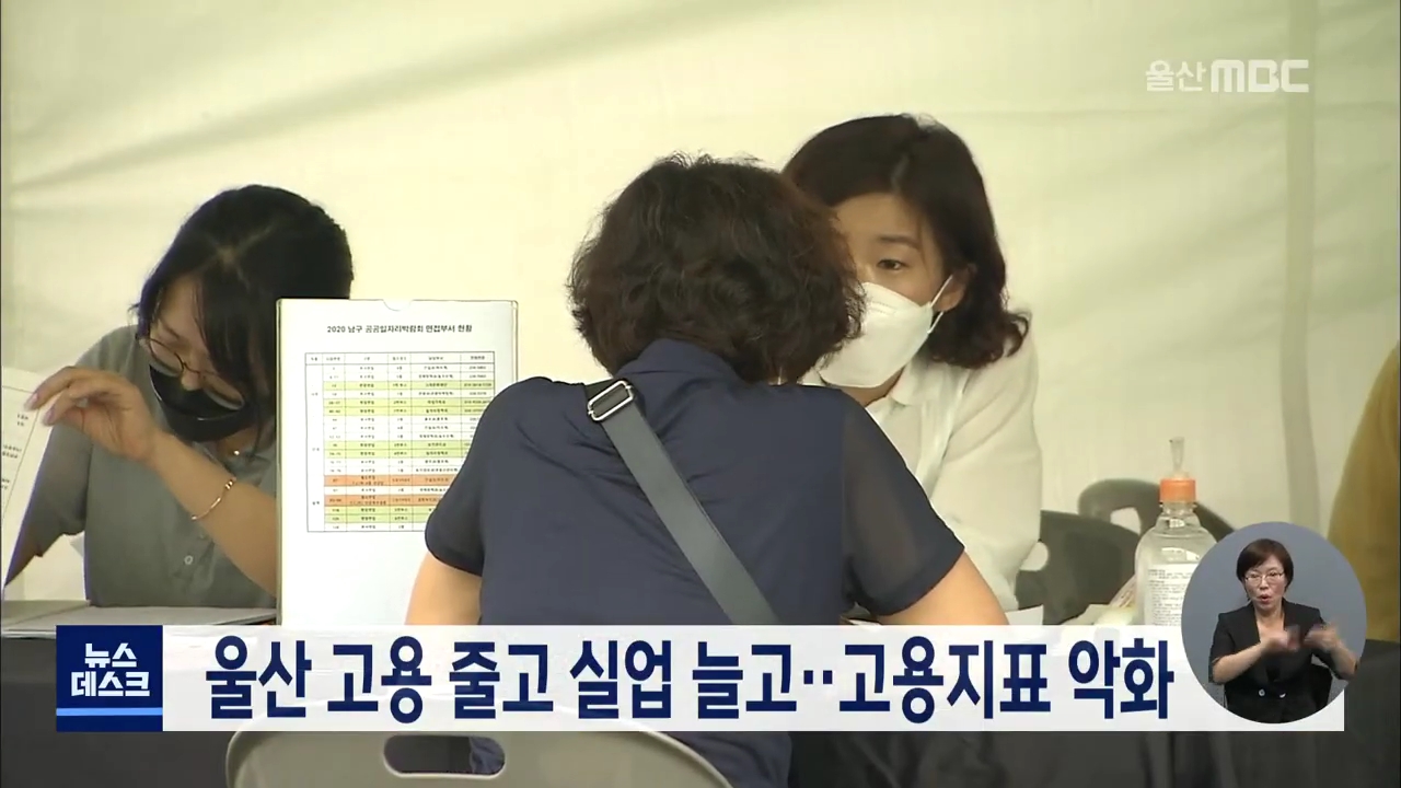 코로나19의 영향으로 울산지역도 고용은 줄고 실업자는 증가하고 있는 것으로 조사됐습니다. 통계청이 발표에 따르면 8월 울산지역 고용률은 58.2%로 지난해 같은 기간보다 1.1% 포인트가 줄었습니다. 반면 실업률은 3.2%로 지난해보다 0.1%가 늘어 고용지표가 악화되고 있습니다. 통계청은 코로나19 재확산으로 9월부터 2...