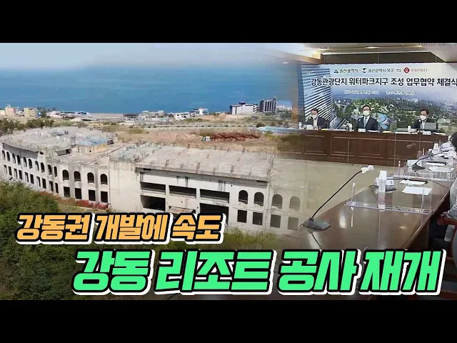 ◀ANC▶울산 강동권 개발에 속도가붙고 있습니다.외곽순환도로와 골프장 등 주변 인프라가 나아지면서 13년동안 방치된 채 흉물이 돼버린 강동리조트 공사가 다시 진행됩니다.정인곤 기자. ◀END▶ ◀VCR▶13년째 방치된 강동 리조트 공사 현장.건물은 이곳 저곳 녹이 슬었고 현장에는 잡풀만 무성합니다. 건설이 중단...