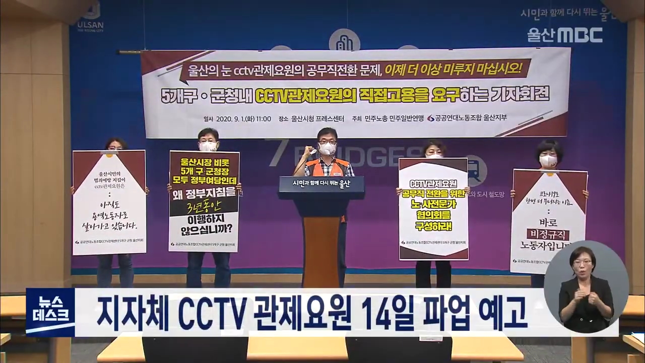 민주노총 CCTV관제센터 울산지회가 관제요원의 직접 고용을 요구하며 오는 14일 24시간 경고파업을 예고했습니다. 이들은 해마다 용역 재계약으로 인한 고용 불안을 겪고 있다며 지자체가 관제요원을 공무직으로 직접 고용해야 한다고 주장했습니다. 노조는 또 중구와 동구, 북구 관계자가 용역업체에 관제센터 업무를 정상...