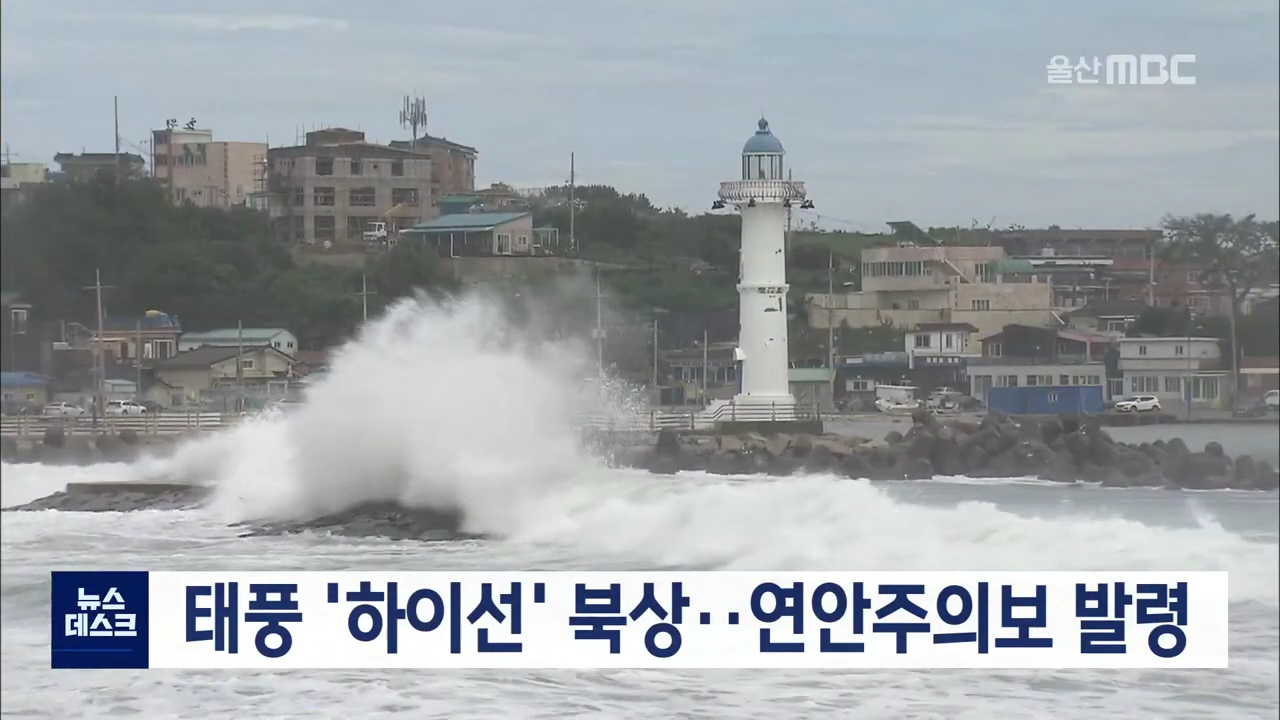 울산해양경찰서는 태풍 '하이선' 북상에 따라 오늘(9/5)부터 3일간 연안안전사고 '주의보' 단계를 발령하고 사고 예방활동을 강화한다고 밝혔습니다. 이는 해안가 위험 구역에서 자연재난으로 인한 사고를 예방하기 위한 것으로 태풍 상황에 따라 '경보' 등 단계적으로 격상될 예정입니다. //