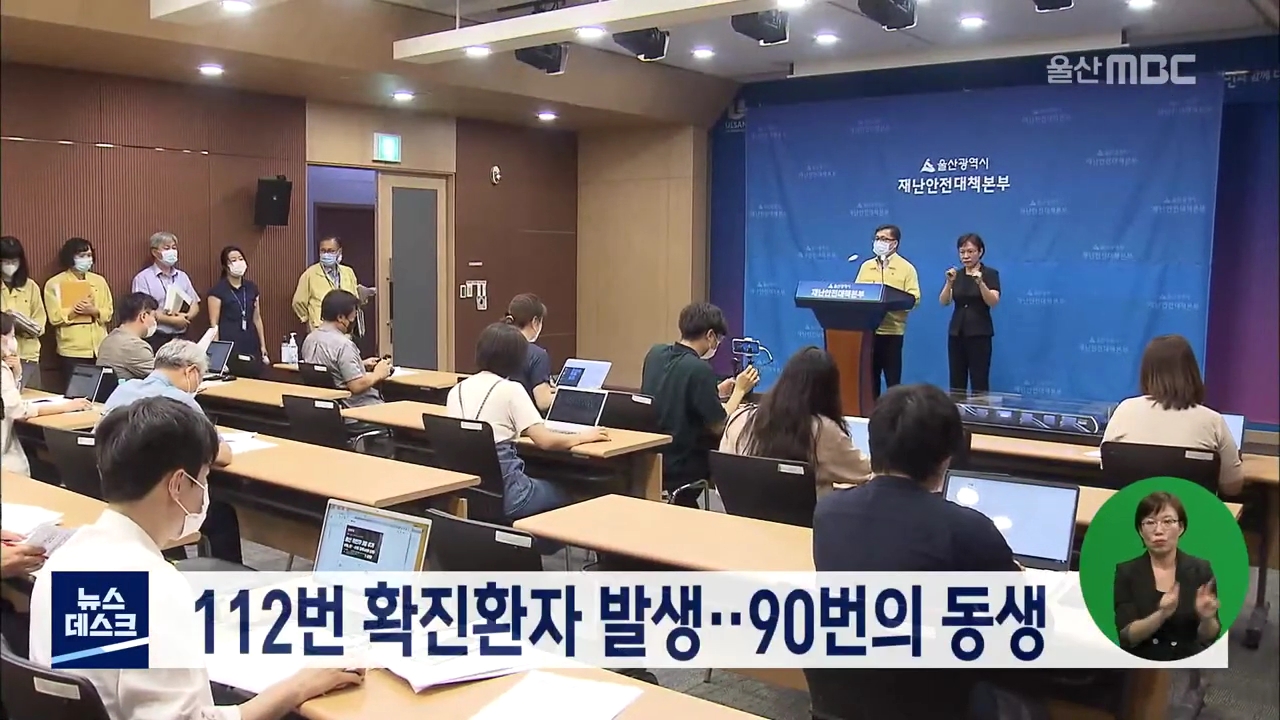 울산에서 112번째 확진환자가 나왔습니다. 북구에 거주하는 66세 남성으로 앞서 확진판정을 받은 90번 확진환자의 동생입니다. 방역당국은 자택을 방역하는 한편 추가 접촉자를 파악하고 있습니다.
