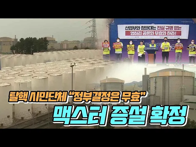◀ANC▶정부가 오늘(8/20) 경주 월성원전 사용 후 핵연료 임시저장시설인 맥스터 증설을 최종 확정했습니다.탈핵 시민단체는 찬성 의견이 80%가 넘는공론화 결과는 조작된 것이라며, 원천 무효를 주장했습니다.최지호 기자.◀END▶◀VCR▶정부가 월성원전 사용 후 핵연료 임시저장시설,맥스터 증설 계획을 확정했습니다...