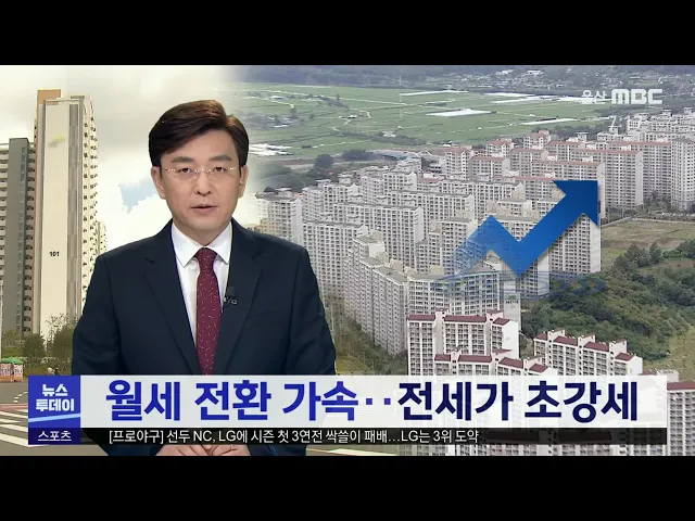 ◀ANC▶울산지역 아파트 매매가격에 이어 전세가격도 초강세를 보이고 있습니다.올해들어 전세 누적 상승률이 세종시와 대전 다음으로 높았습니다.김문희 기자 ◀VCR▶ ◀END▶울산 아파트 전셋값이 또다시 올랐습니다.CG 1)8월 첫주 울산지역 주간 아파트 전셋값 상승률은 0.3%를 기록했습니다.이는 세종시 2.2%, 대전 ...