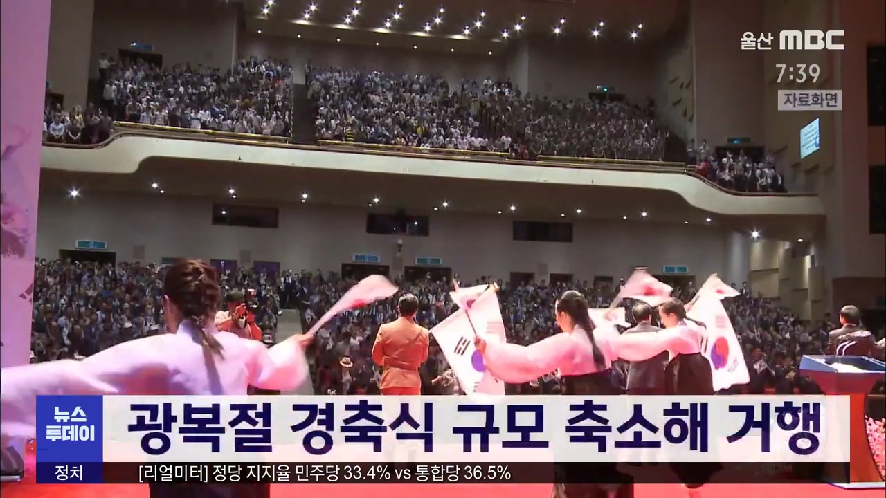 제75주년 광복절을 맞아 울산에서는 오는 15일 오전 10시 문화예술회관 대공연장에서 독립유공자 유가족 등이 참석한 가운데 경축식이 거행됩니다. 올해 경축식은 코로나19 예방을 위해 참석 규모를 250명으로 축소하고, 좌석간 거리두기와 방역을 실시할 예정입니다. 이날 울산박물관에서는 '태극기가 바람에 펄럭입니다'...
