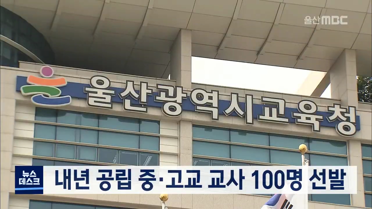 울산교육청이 내년도 공립 중·고교 교사 선발 인원을 100명으로 잠정 확정했습니다. 시교육청은 2021학년도 중등교원 임용 규모를 1년 전 사전예고 인원보다 5명 늘어난 100명으로 집계했습니다. 매년 11월 실시되는 중등교사 임용시험은 수험생 혼란을 막기 위해 사전 예고를 거쳐 10월 중 최종 임용 공고가 확정됩니다.//