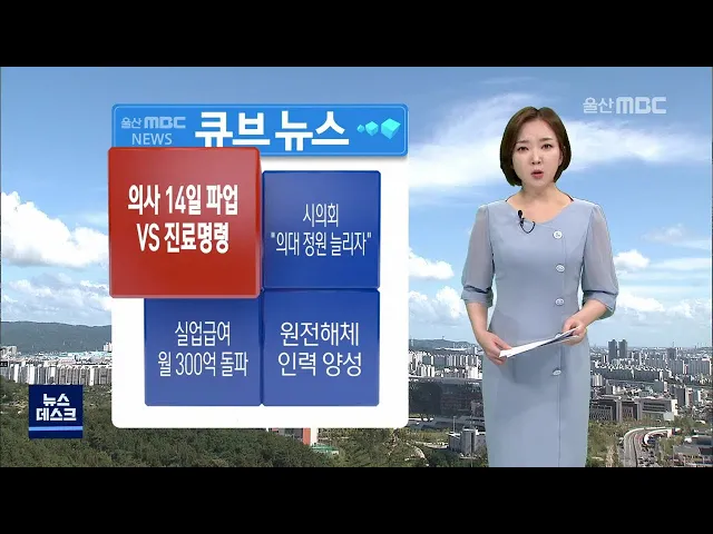 울산시의사협회가 의대 정원 확대와 공공의대 설립에 반대하며오는 14일 파업을 예고한 가운데 울산시가 진료명령을 내렸습니다.울산시는 이날 휴진에 참여하는 것은 불법이라며 의료기관에 진료명령을 내리는 한편 비상진료대책 상황실을 설치해 운영에 들어갔습니다.울산시의사협회에 따르면14일 파업에 들어가는 병의원...