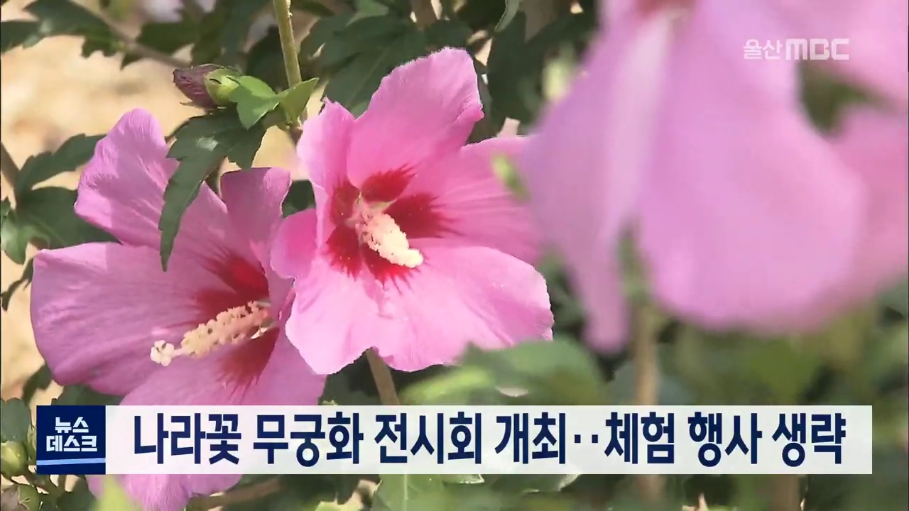 제22회 나라꽃 무궁화 전시회가 광복절인 오는 15일 태화강국가정원 무궁화정원 일대에서 열립니다. 15가지 종류의 무궁화가 선보일 예정이며 전시회를 찾는 시민들에게는 무궁화 묘목과 꽃을 나눠줍니다. 특히, 올해는 코로나19 감염 위험을 낮추기 위해 무궁화 체험 행사를 열지 않기로 했습니다. //