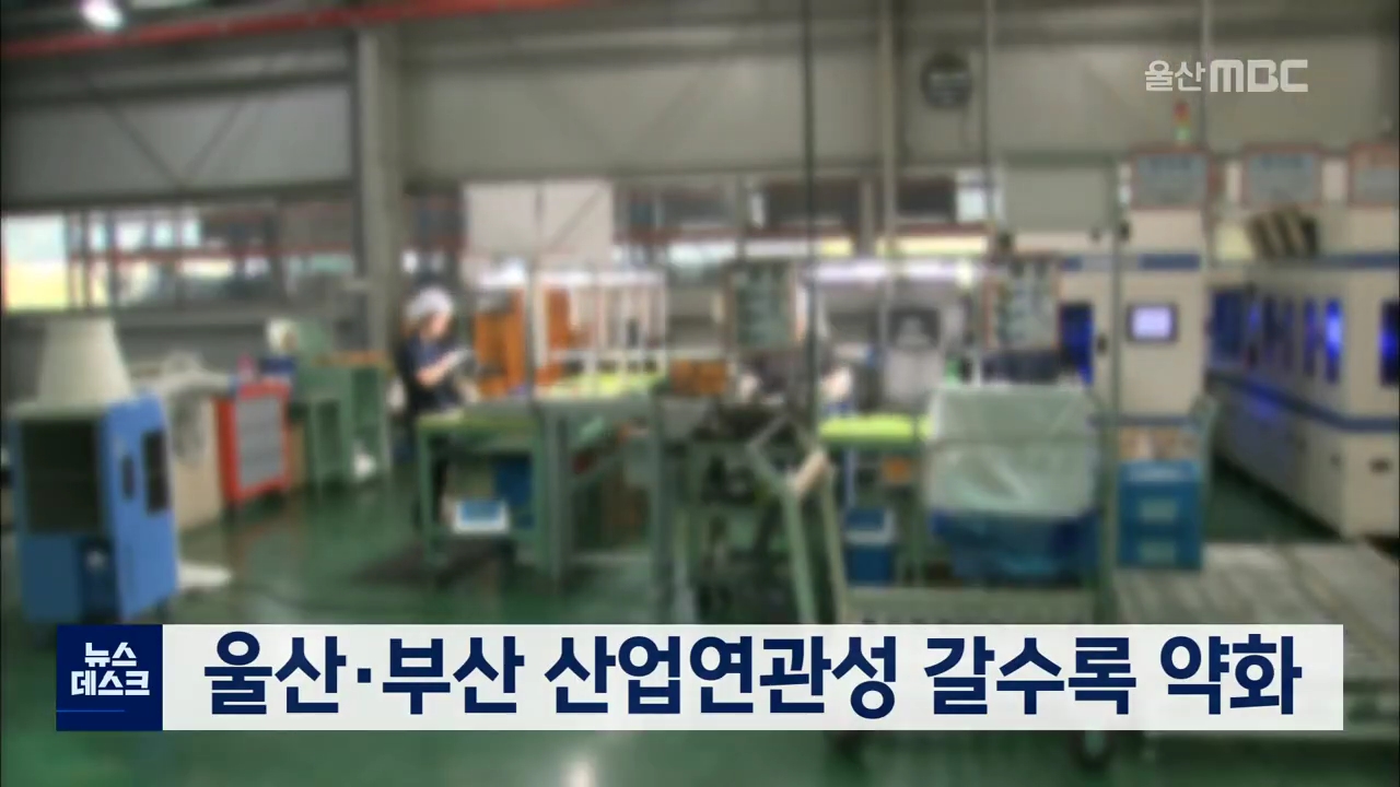 울산과 부산의 산업 연관성이 갈수록 약화되고 있는 것으로 나타났습니다. 한국은행 부산본부가 발표한 '부산지역 경제의 취약요인 분석'보고서 따르면 부산의 전 산업 최종재 수요증가가 유발하는 생산 가운데 울산이 차지하는 비중은 2005년 5.4%에서 2013년 3.5로 하락했습니다. 또 울산의 전 산업 최종재 수요 증가가 ...