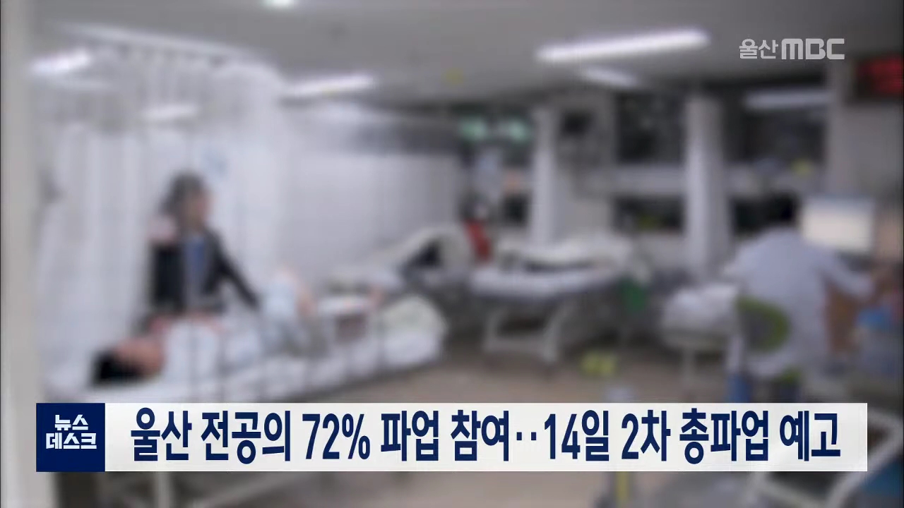 울산 전공의 72% 파업 참여..14일 2차 총파업 예고