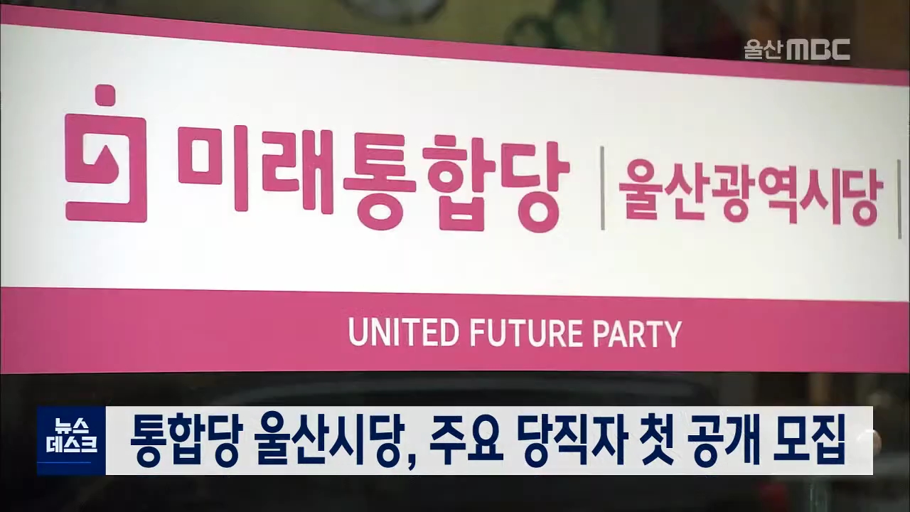 미래통합당 울산시당은 주요 당직자를 처음으로 공개 모집합니다. 서범수 국회의원이 시당위원장을 맡으면서 변화와 개혁에 나서겠다는 의지를 표현한 것이라고 시당은 설명했습니다. 공개 모집 대상 중 핵심 당직자는 혁신위원장과 인재영입위원장, 윤리위원장 등이며 시민 누구나 신청할 수 있습니다. //