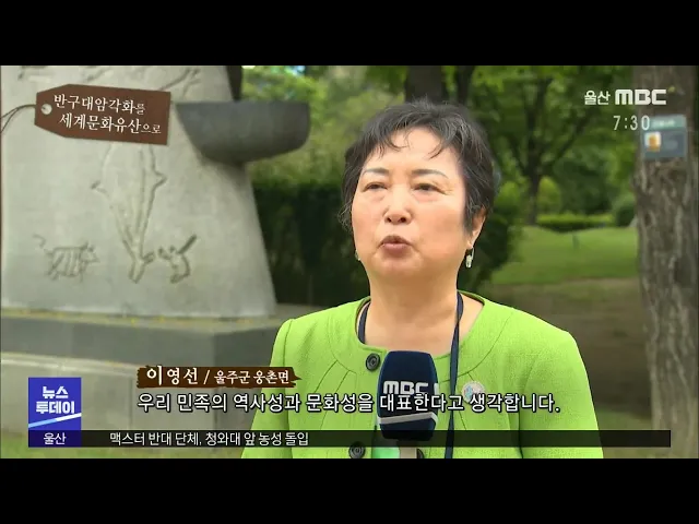 이영선 / 울주군 웅촌면우리 민족의 역사성과 문화성을 대표한다고 생각합니다. 그래서 전 세계 사람들이 와서 보고 한국의 높은 문화성과 역사성을 좀 잘 알 수 있도록 널리 알리고자 하면 유네스코 등재가 돼야 되지 않을까요? 그래서 우리 시민들은 반구대를 우리만 보지 말고 전 세계인들에게 알릴 수 있는 기회를 갖도...