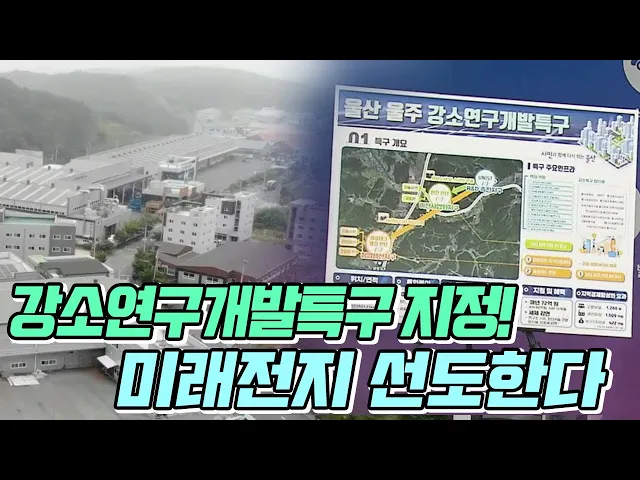 ◀ANC▶울산 울주군이 정부가 지원하는 '강소연구개발특구'로 지정됐습니다.특구에는 유니스트와 인근 산업단지, 지역 기업들이 연합해 미래형 전지 연구와생산 거점을 조성하게 됩니다.유희정 기자. ◀END▶ ◀VCR▶울산 울주군이 과학기술정보통신부가 지원하는 '강소연구개발특구'로 지정됐습니다.강소연구개발특구...