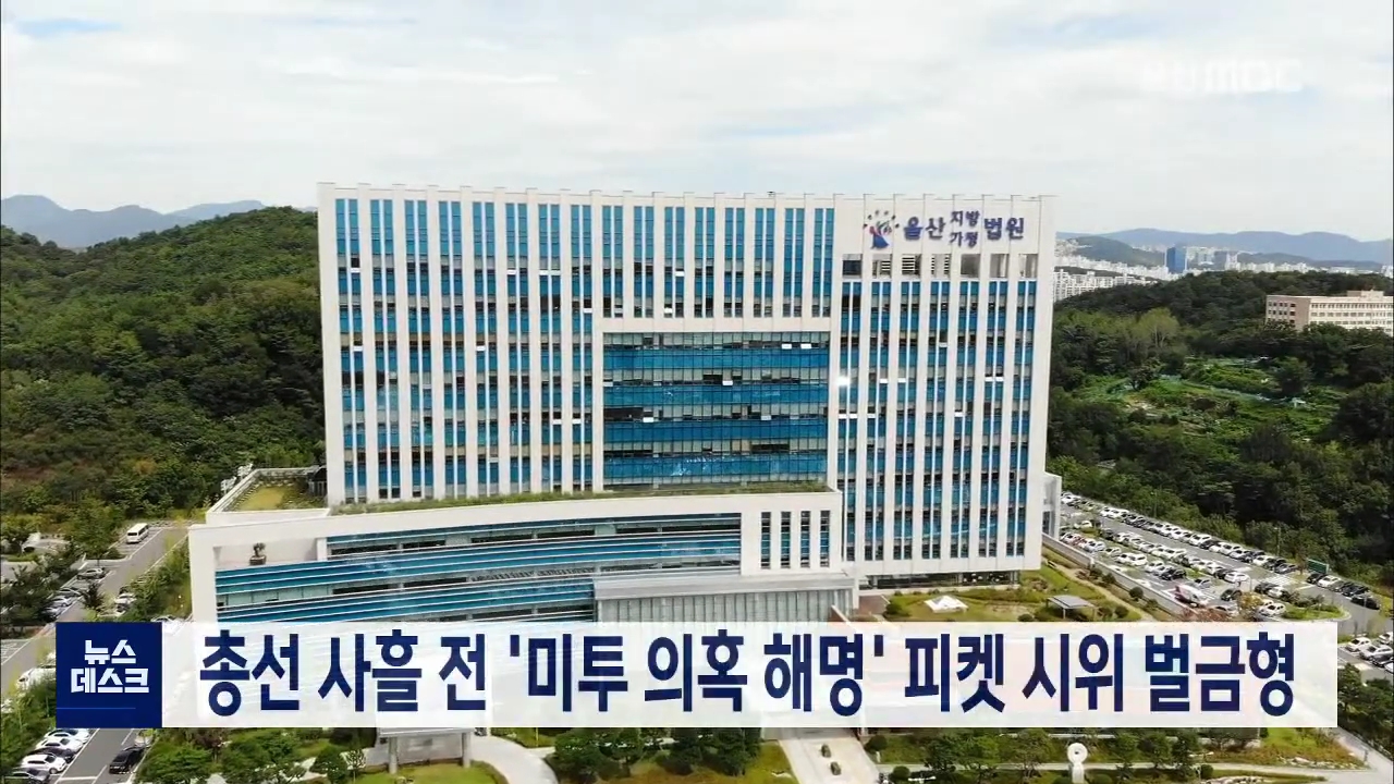 울산지법 형사12부는 선거에 영향을 미치려는 의도로 특정 후보자의 미투 의혹 해명을 요구하는 피켓 시위를 한 혐의로 기소된48살 A씨에게 벌금 50만원을 선고했습니다.A씨는 4.15 총선 사흘 전인올해 4월 12일 오전 10시 30분쯤울산의 한 대형마트 앞에서 `성폭행 의혹 당사자가 국회의원 자격이 있는가'라는 내용이 적힌...