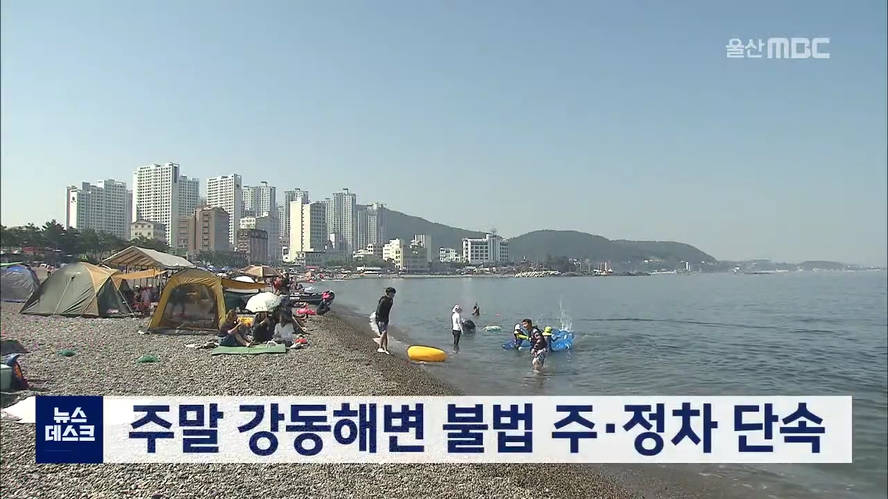 불법 주정차가 심각한 북구 강동해변에서 주말에도 불법 주·정차 단속이 실시됩니다. 특히 사람들이 많이 찾는 낮 12시부터 오후 4시까지 해변 도로 일대 주·정차 차량을 단속할 예정입니다. 코로나19 사태와 휴가철이 겹치면서 강동해변 일대 불법 주·정차가 심해 민원이 끊이지 않고 있습니다. //