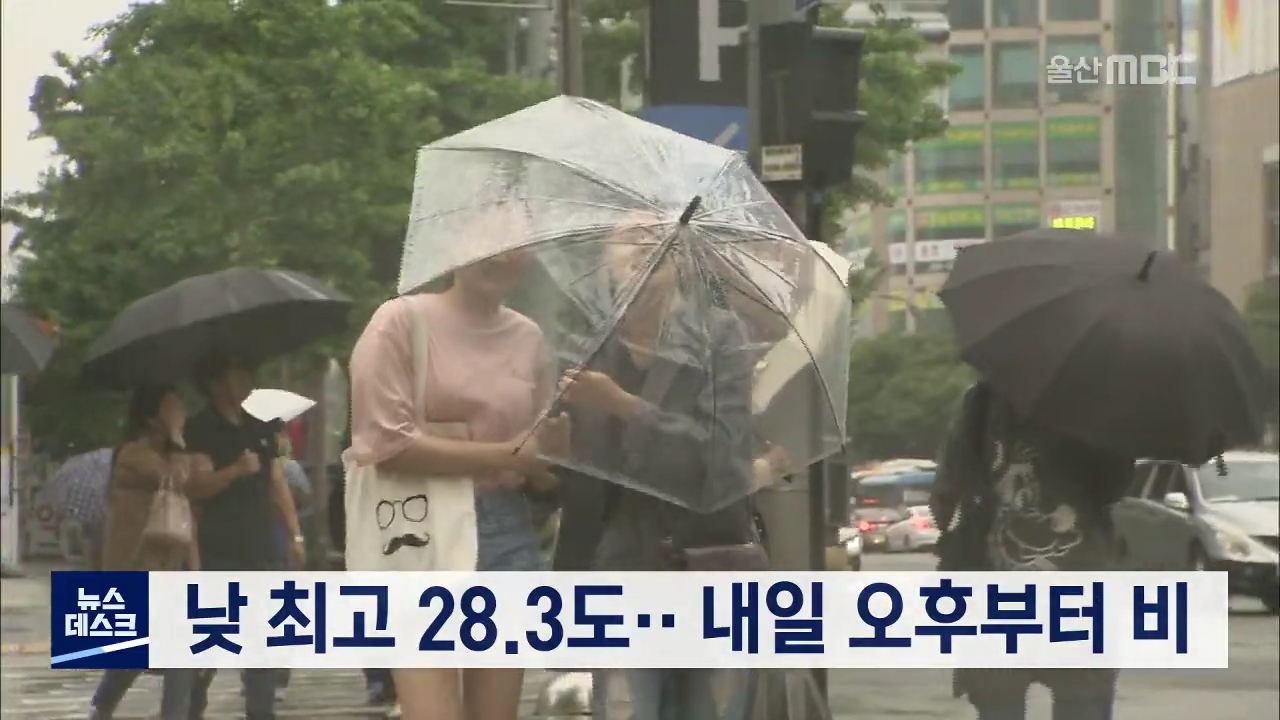 오늘(7/26) 울산지방은 구름 많은 날씨 속에 낮 최고 기온이 어제보다 3도 높은 28.3도를 기록했습니다. 내일은 오후부터 비가 내리기 시작해 모레 밤까지 50에서 많게는 150mm의 많은 비가 오겠으며,21에서 26도의 평년보다 낮은 기온 분포가 예상됩니다. 울산기상대는 내일부터 모레까지 초속 4에서 10m의 강한 바람이 ...