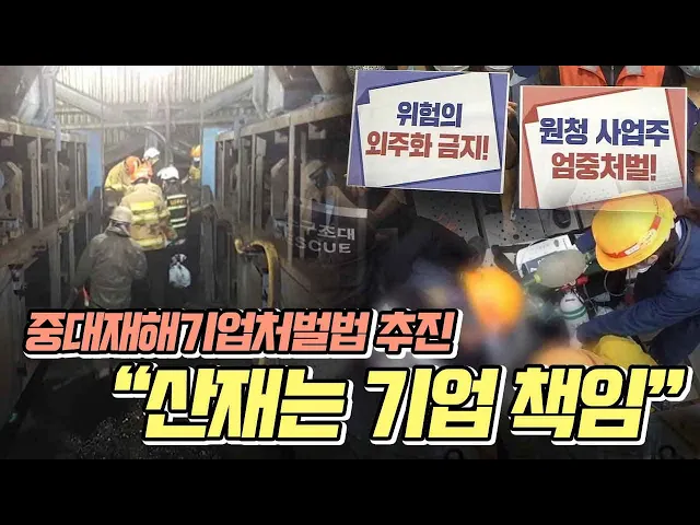 ◀ANC▶사망이나 중상 등 심각한 산업재해를 일으킨기업을 처벌하는 법을 제정하자는 움직임이본격화되고 있습니다.기존의 법으로는 중대한 산업재해에 대해강력한 처벌을 할 수 없어사고가 반복되고 있다는 겁니다.유희정 기자. ◀END▶ ◀VCR▶우리나라에서는 매일 7명이 산업재해 사고로 목숨을 잃습니다.산재사망 ...