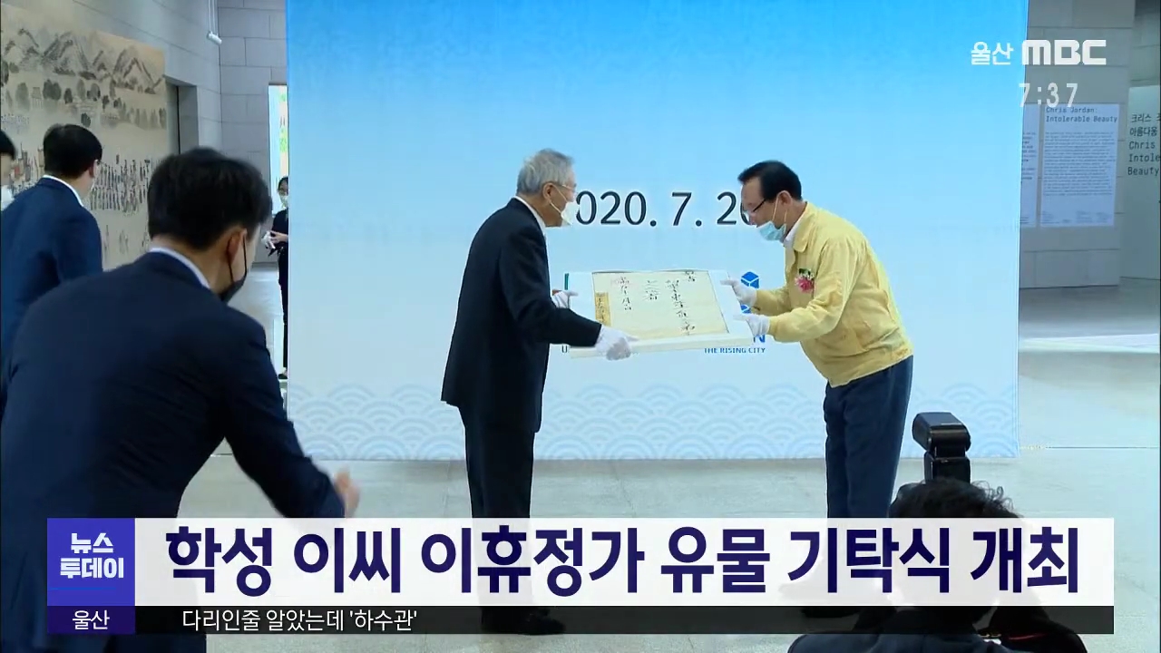 울산박물관은 오늘(7/20) 이휴정가 유물 기탁식을 개최했습니다. 이번 유물들은 학성 이씨 주손 이증 씨로부터 기탁받은 고서와 고문서 등으로 모두 1천 661점입니다. 대표 유물은 조선시대 현종이 1666년 2월 생원시 등에 합격한 이휴정 공에게 발급한 백패입니다. //