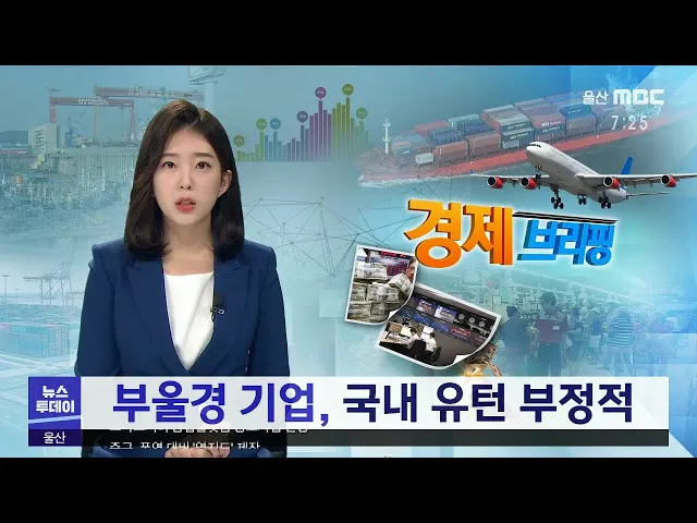 ◀ANC▶울산과 부산과 경남지역 제조업체 등 상당수가 해외 공장의 국내 유턴에 대해부정적인 것으로 나타났습니다.경제브리핑 최지호 기자 ◀VCR▶ ◀END▶정부가 해외에 진출한 기업의 국내복귀를 추진하고 있는 가운데 울산과 부산과 경남지역 제조업체 등 상당수가 부정적인 것으로 나타났습니다.울산과 부산, 경남...